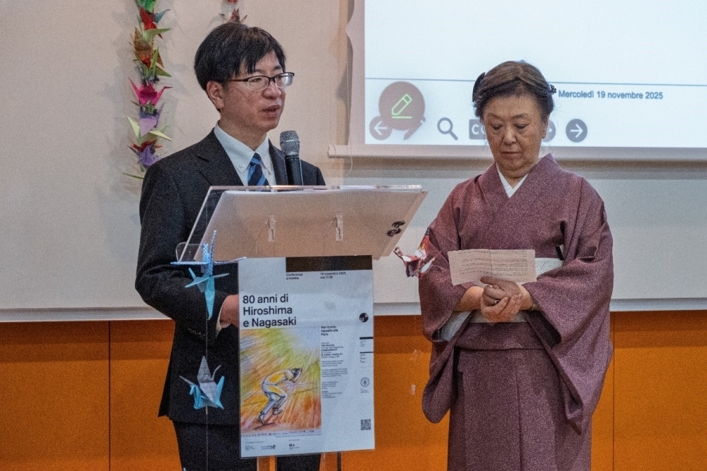 Participation du Chef du Consulat, M. HAGINO Akiyuki, à la conférence « Nel ricordo l'appello alla Pace : 80 anni di Hiroshima e Nagasaki » à l'Université de Lugano (19.11.2025)