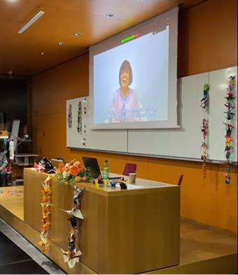 M. HAGINO a prononcé une allocution lors de la conférence, au cours de laquelle a notamment été projeté le témoignage vidéo en anglais de Mme YAHATA Teruko, survivante des bombardements atomiques.